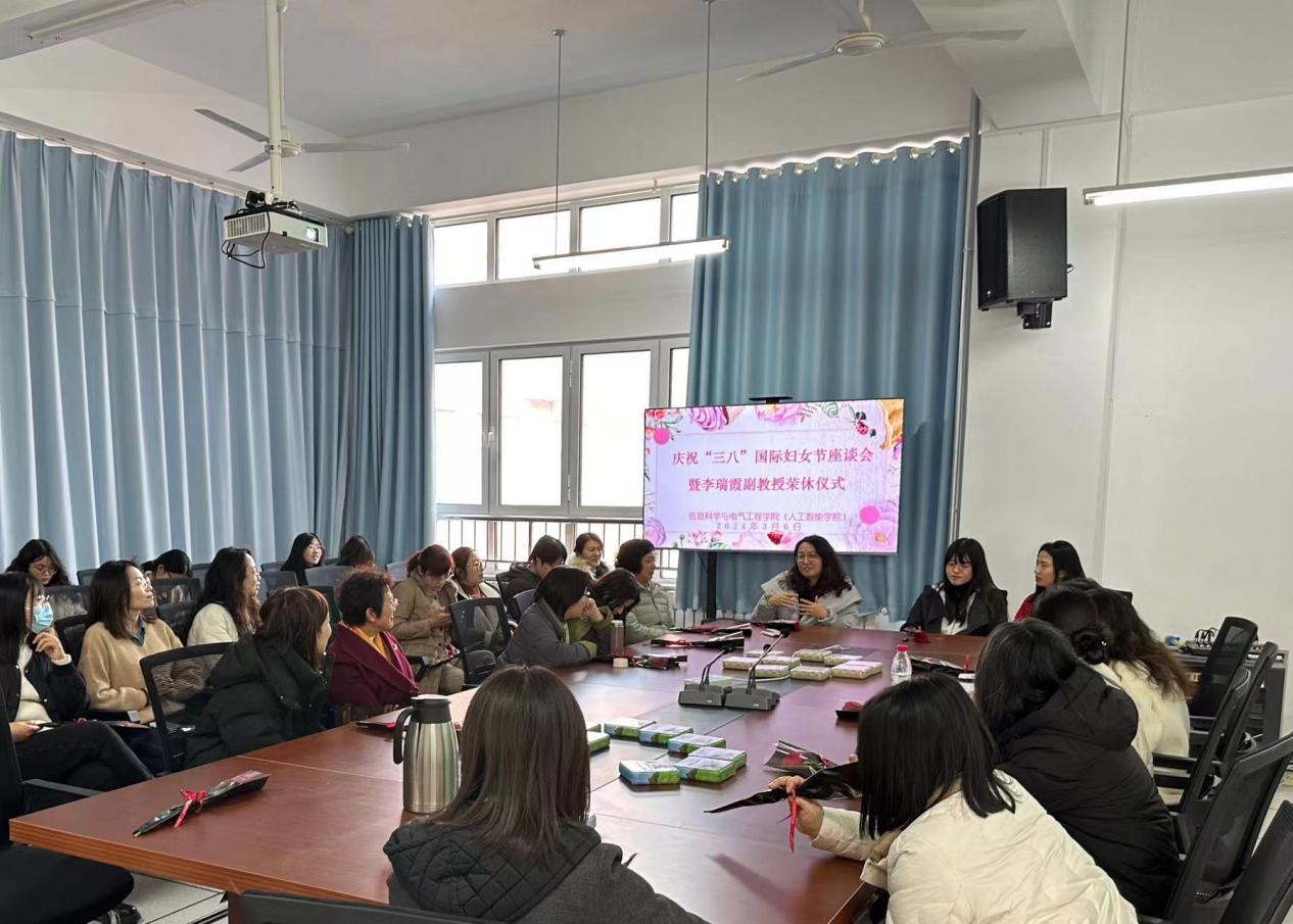 3月6日下午,学院妇委会在机电楼B309会议室举办了以“运动、健康、快乐”为主题的“三八”国际妇女节主题活动暨李瑞霞副教授荣休仪式。学校工会主席、妇委会主任闫晓阳莅临活动现场,学院全体领导班子成员、学院全体女教职工以及女学生代表参加了活动,学院党委副书记庄伟主持座谈会。