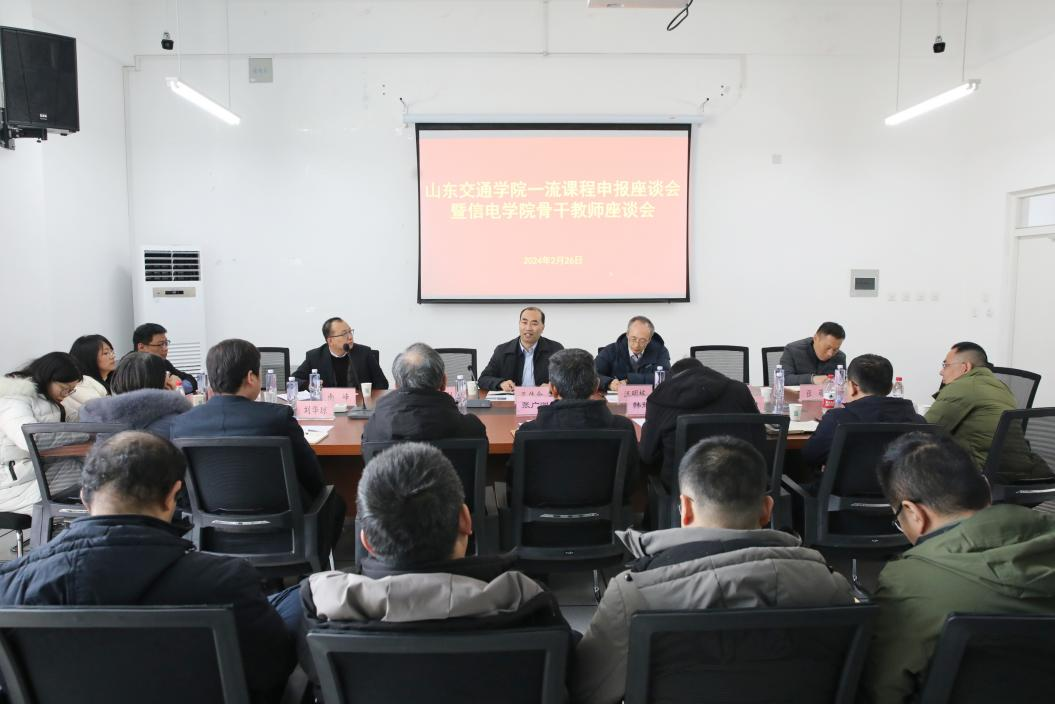 为进一步提高学校课程建设质量,深化课堂教学改革,提高教师教学水平和教学质量,2月26日上午,学校在机电楼B座309会议室举办“一流课程”座谈会暨信息科学与电气工程学院骨干教师座谈会。会议由学校党委副书记、院长孔伟金主持,学校教务处处长汪明栋、信息科学与电气工程学院院长张广渊、副院长吴昌平、副院长韩耀振以及第三批国家级一流本科课程拟推荐课程负责人及骨干教师代表出席了座谈会。