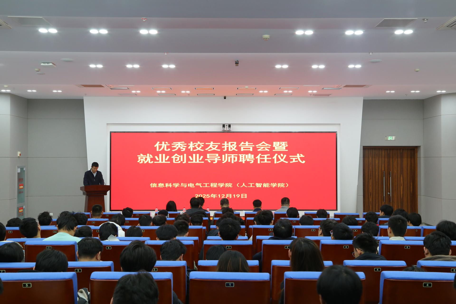 12月19日,学院在机电楼B107报告厅举办优秀校友报告会暨就业创业导师聘任仪式。活动邀请董辉、张秀会两位优秀校友。学院院长张广渊出席活动,活动由学院党委副书记刘洋主持。